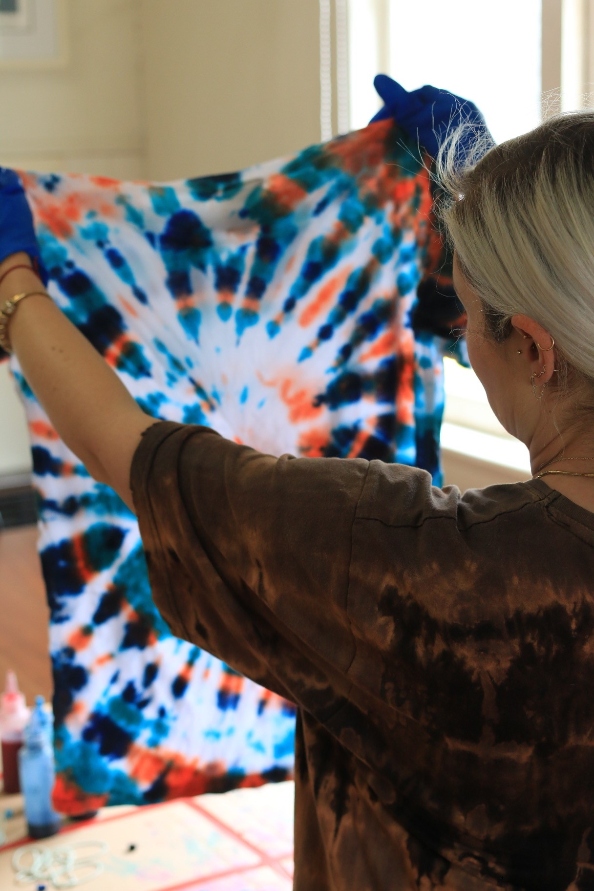 Without a job but not without her passion for fashion, Beth turned to an artform that is on the brink of a return to fashion itself – tie dye. After hearing about Beth’s tie-dye work for her family and friends, we got in touch about a unique collaboration.