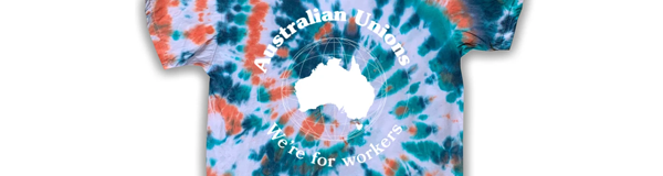 The result – An extremely limited range of hand tie-dyed, Australian and union made We’re for Workers T-Shirts.
