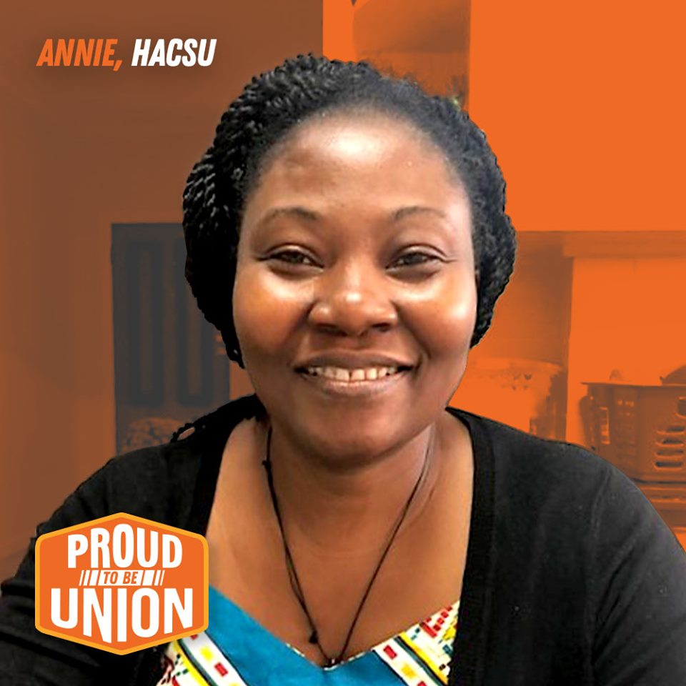 Photo: Annie, a HACSU member from Victoria, is proud to be union – read her story here and other union members’ stories on our Facebook page