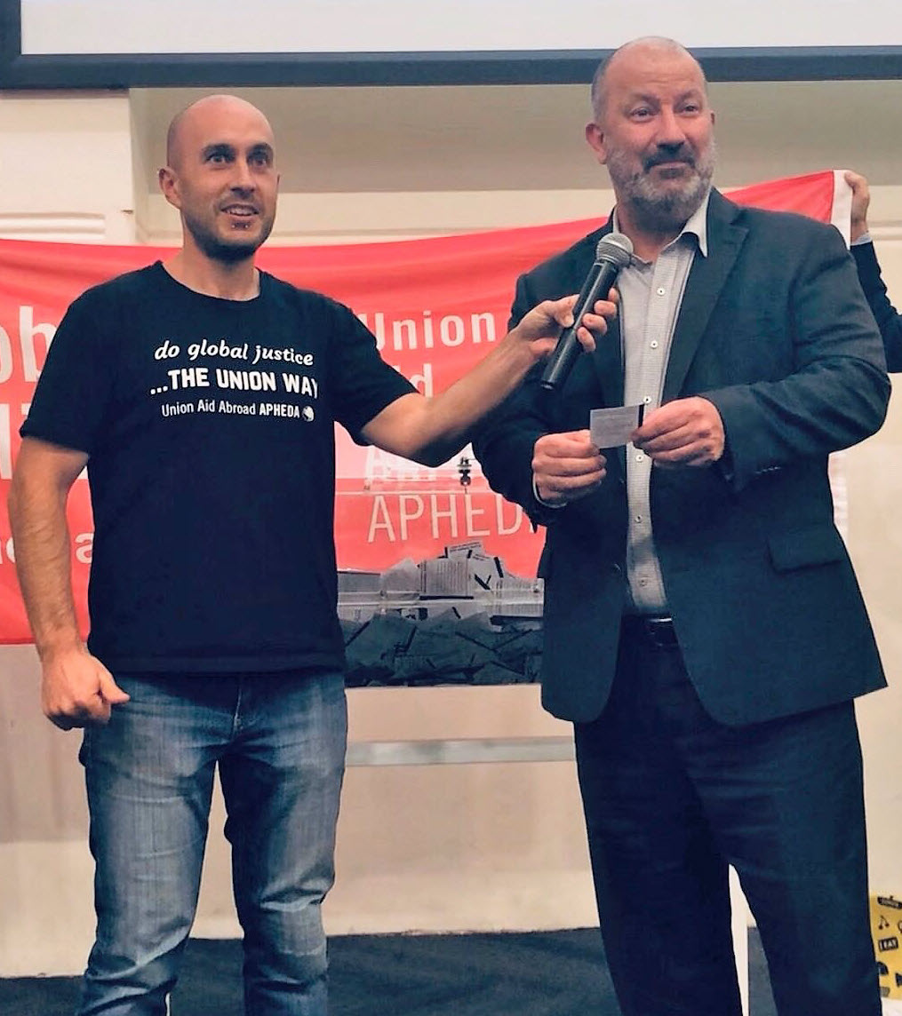 2019 APHEDA raffle winners announcedThe Union Aid Abroad – APHEDA raffle for 2019 was drawn at the Trades Hall Auditorium in Sydney on Thursday 6 June, 2019. Thanks to Unions NSW Secretary, Mark Morey, for drawing the winning tickets. Congratulations to everyone who supported the 2019 APHEDA Raffle. You are all winners for standing with workers around the world striving for justice and safe and decent work. Of course, a special congratulations to the three winners from the barrel. 1st prize – $8,000 travel voucher: G South NSW 2nd prize – Gazelle CitiZen Bicycle: J Thorburn NSW 3rd prize – $500 Gleebooks’ voucher: A Morgan VIC Booksellers prize: J Kerbel NSW |