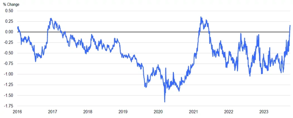 Overall, this sees our policy theme remain quite a negative driver for financial markets, even as it has evolved to downplay the likelihood of any further rate hikes, while emphasizing “Policy to Remain Restrictive” even as we move into 2024.
