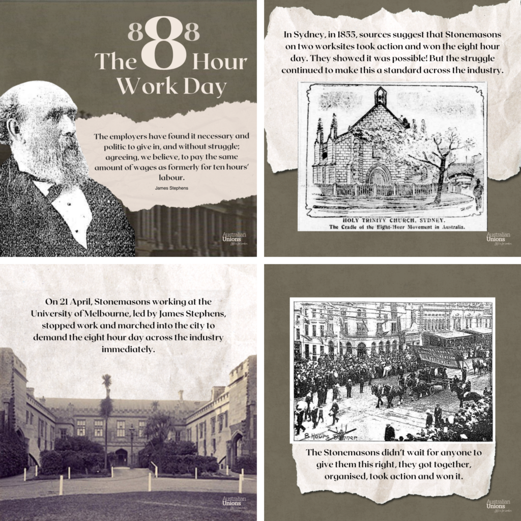 Just as the Stonemasons got together, organised, and took action to drive change; union members today have stood together and won new and improved work rights.