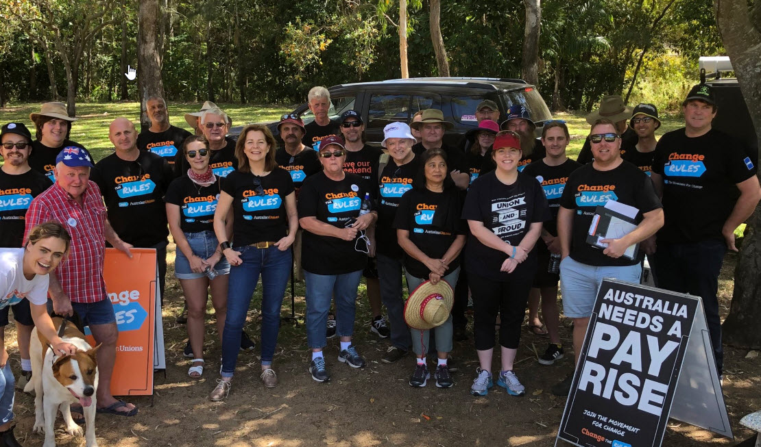 Photo: ACTU President Michele O’Neil with Change the Rules activists in Rockhampton on Saturday 1 September.