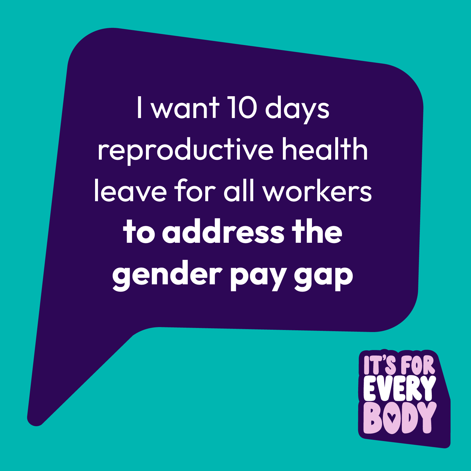 To help address the gender pay gap, reduce reproductive health stigma, support workers’ health and wellbeing and create more inclusive workplaces across the country; workers need access to paid reproductive health leave.